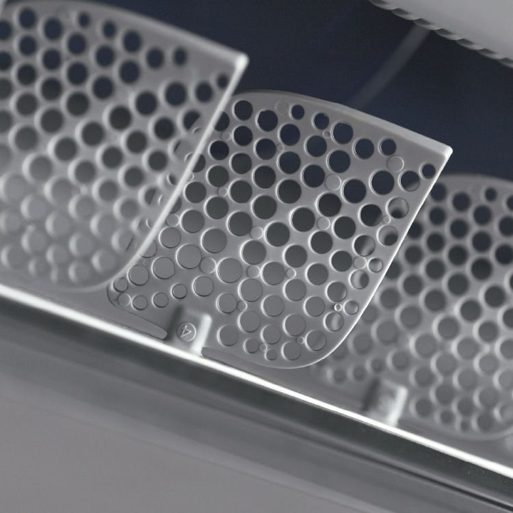 Sistem penapisan 3-lapisan yang menampilkan Pra-Penapis, Penapis HEPA, dan Penapis Karbon Teraktif untuk menyingkirkan habuk, alergen, dan bau.